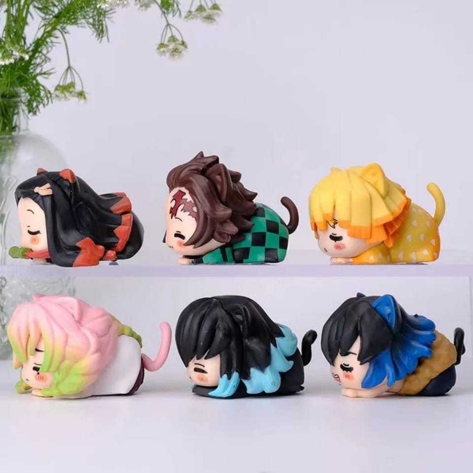 ACTION FIGURE KIMETSU NO YAIBA KITTY CAT MODEL TANJIRO NEZUKO ZENITSU INOSUKE DEMON SLAYER HOBI MINIATUR ANIME
