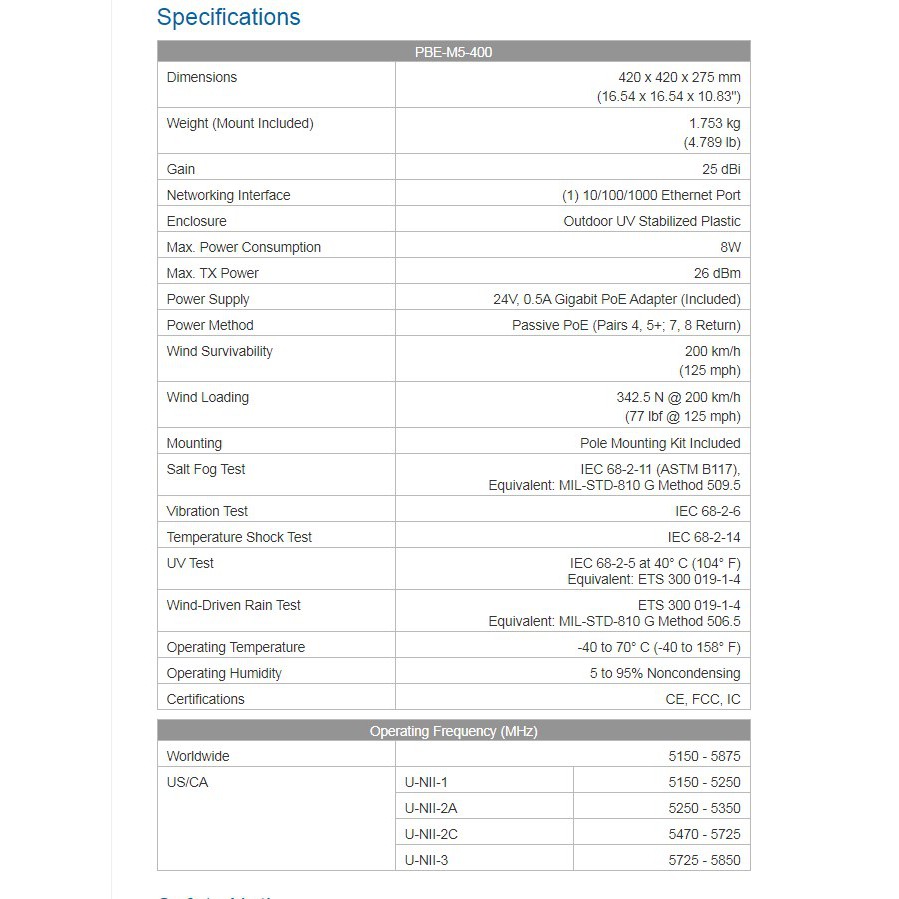 Ubiquiti PBE M5 400 PowerBeam 5Ghz 400 25dBi