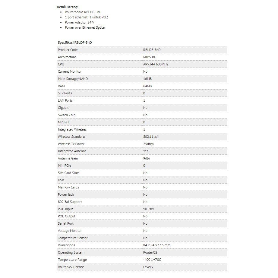 MikroTik LDF 5 RBLDF-5nD Routerboard PoE 16MB RAM