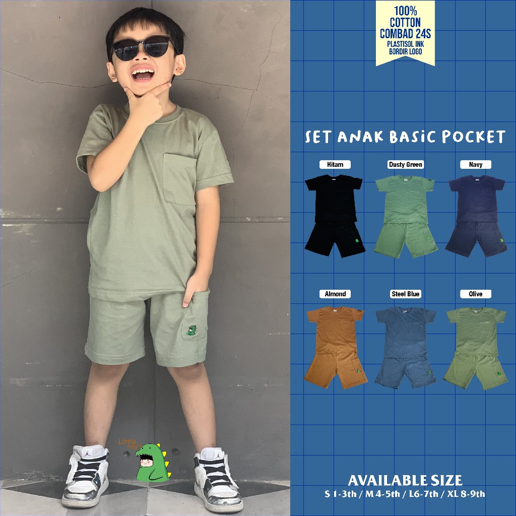 Little Rays Setelan Anak Baju Anak Laki-Laki Perempuan Basic Pocket Tee