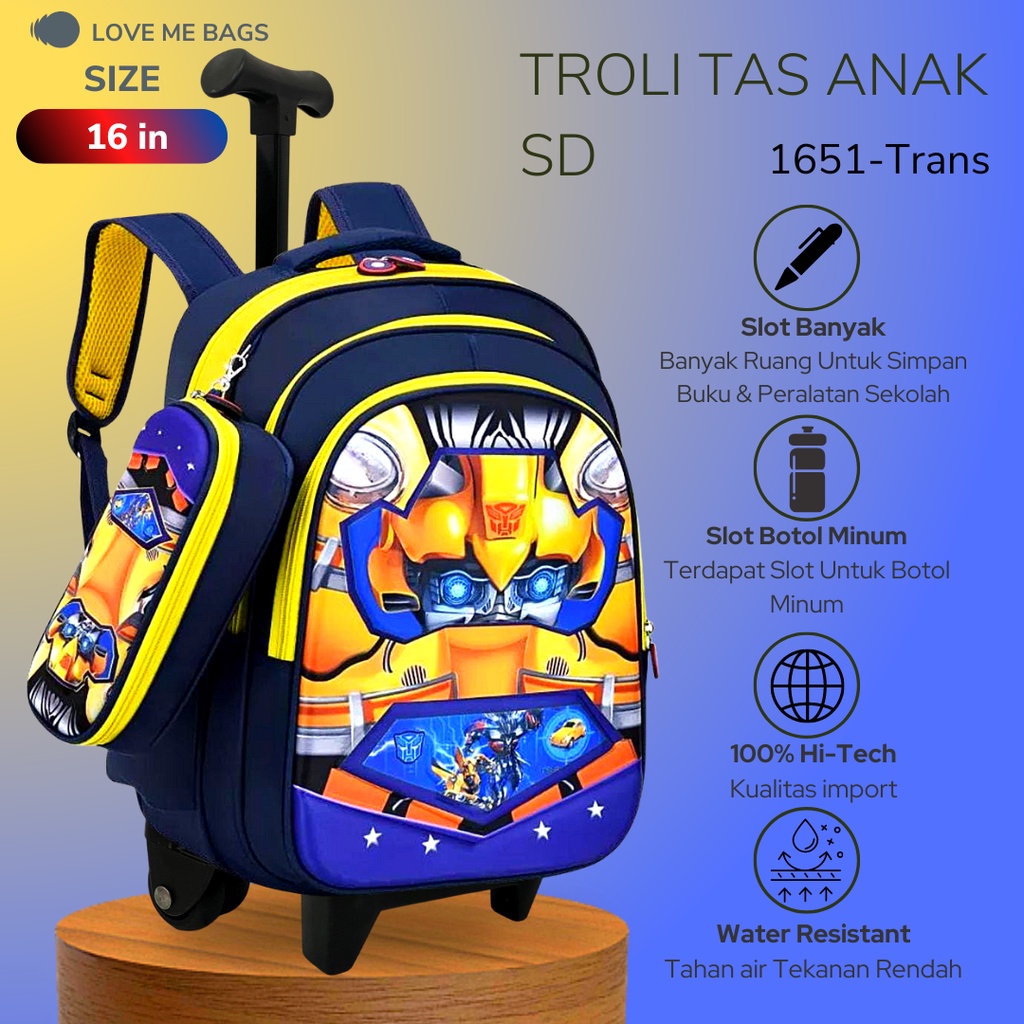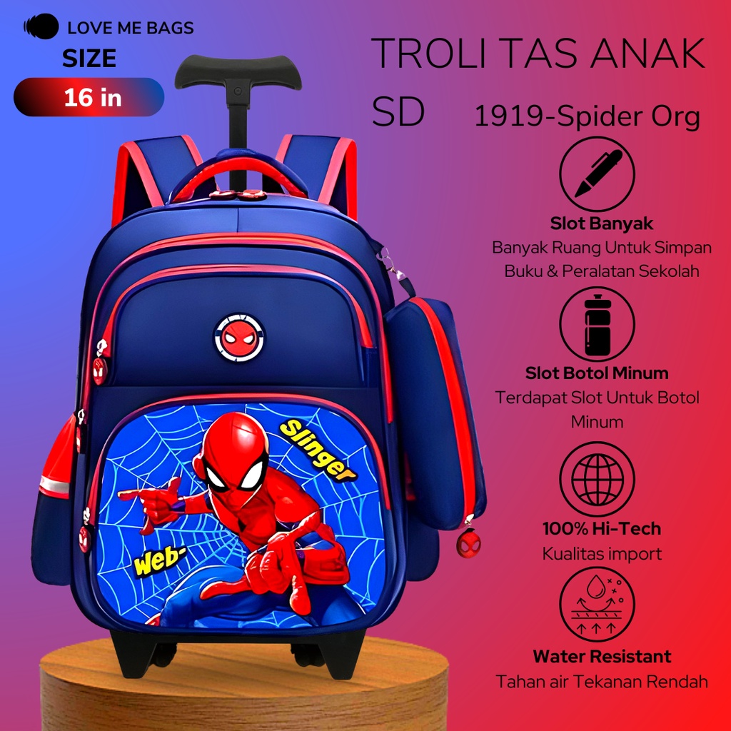 Lmb Tas Troli Anak Laki Laki Sekolah Sd Ransel Import Premium Karakter Gambar Superhero Timbul 6D Roda Dorong