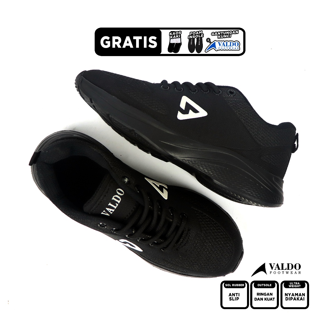 sepatu sekolah anak laki laki Valdo Footwear 31-43 Victor Sepatu Anak Laki Laki Dan Pria Dewasa Full Hitam VR 001