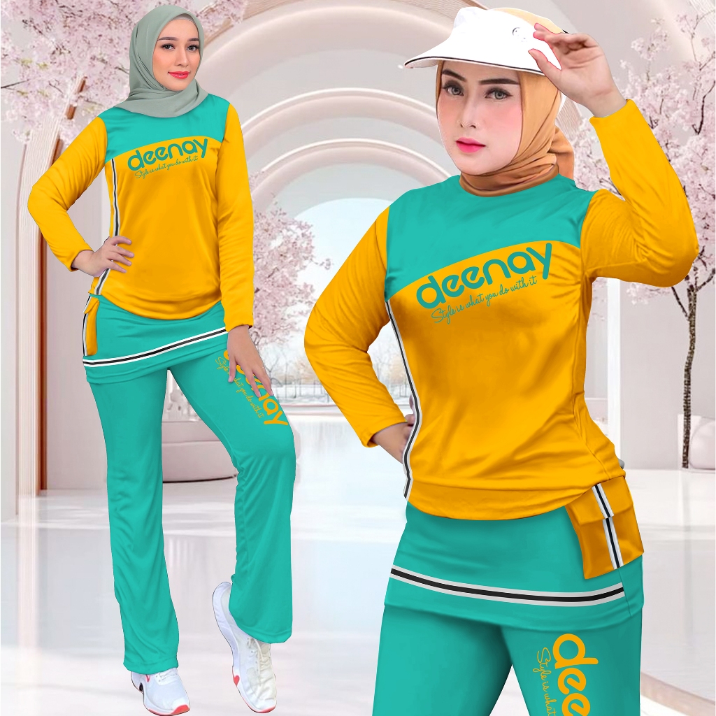 Setelan Olahraga Wanita Rok Kombinasi Celana Cargo Sporty Motif Deenay Viral Training Senam Oneset Joging Running Kekinian