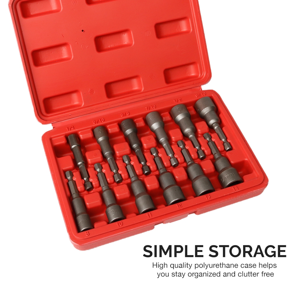 JLD Magnetic Nut Setter 12 in 1 Paket Hemat Bahan Cr-V Metric & SAE Kotak Penyimpanan Shank Hex 1/4" Untuk Otomotif/Diy/