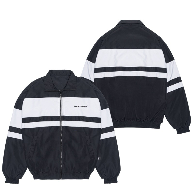 WESTGODS Jaket Tracksuit Sport Tracktop Pria Wanita Hitam Strip Putih