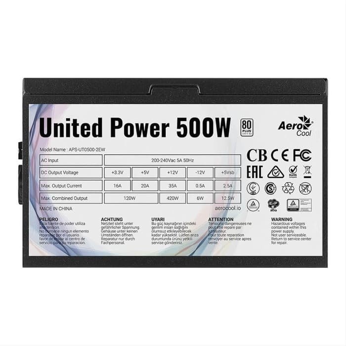 Aerocool United Power 500W PSU - Power Supply 500 Watt 80+ White