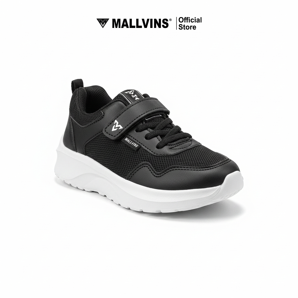 Mallvins Sepatu Sekolah Anak Size 31-38 Black White