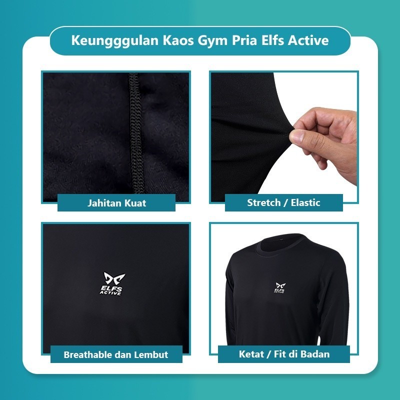 ELFS ACTIVE Compression Kaos Gym Pria Dry Fit Long Sleeve Shirt Baselayer