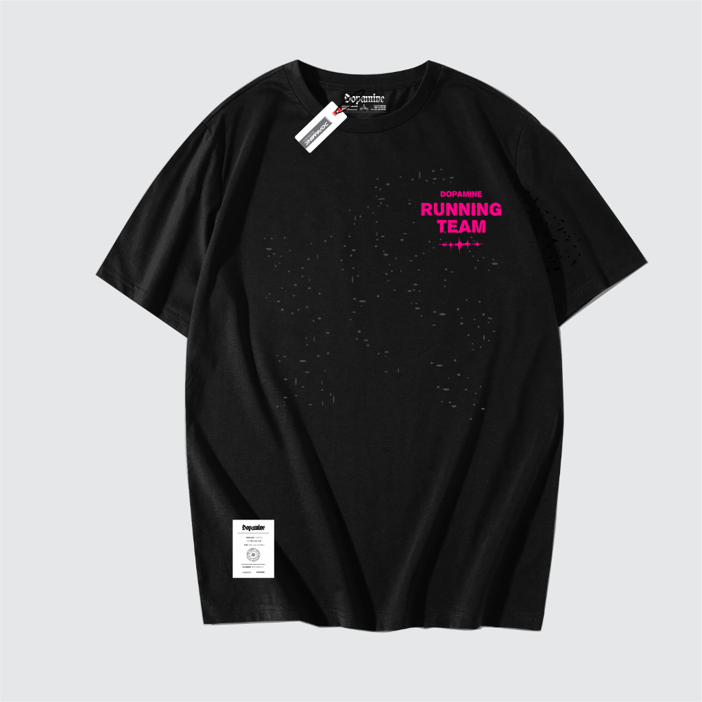 DOPAMINE Baju kaos Lari Jogging Pria Wanita Lengan Pendek Running Short Sleeve LASERSHOT Cowok Tshirt Cotton Combed 24s Warna Hitam Size S XXL