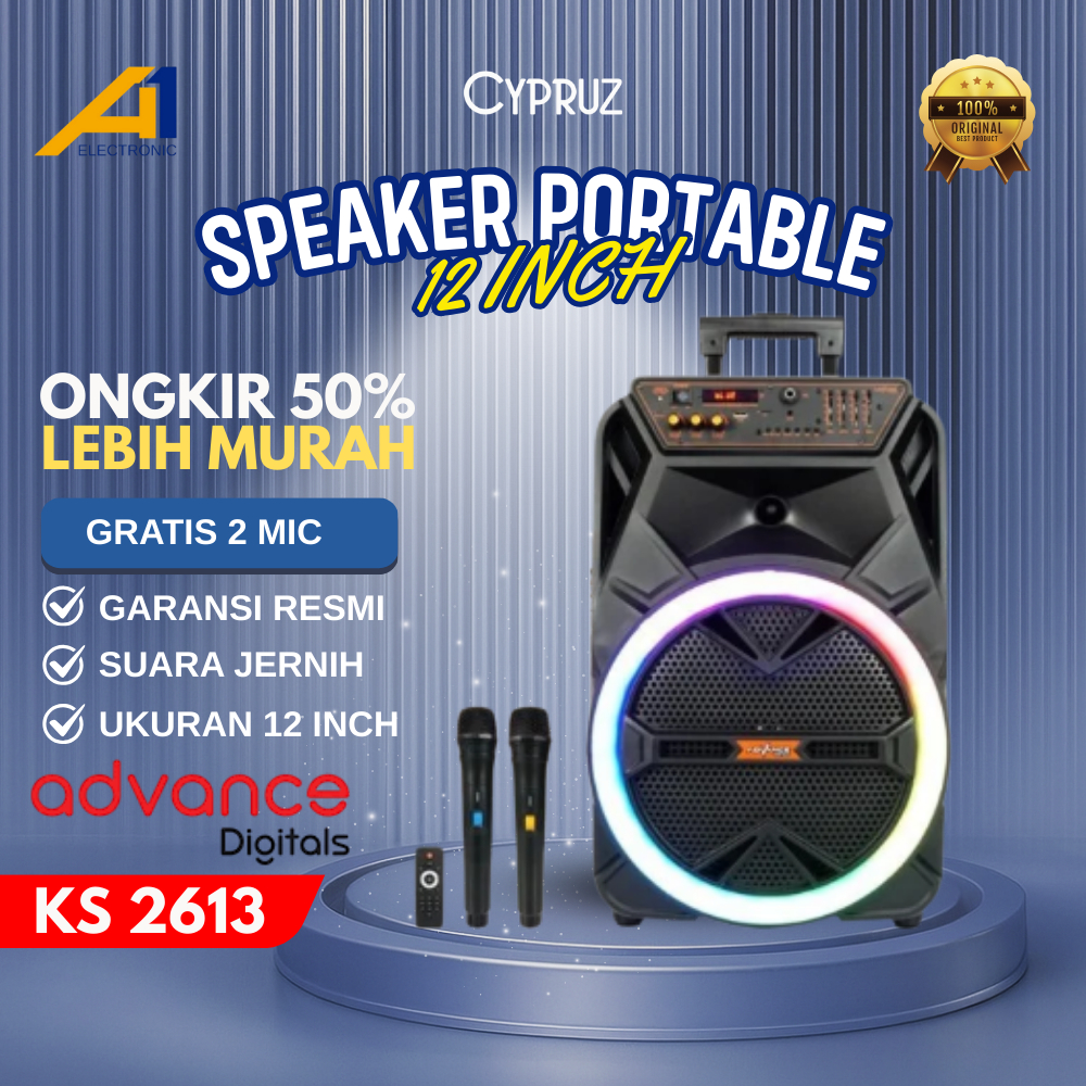 ADVANCE Speaker Portable KS2613 | KS 2613 Aktif 12 Inch Bluetooth Trolley Dengan Remote Bonus 2 Mic