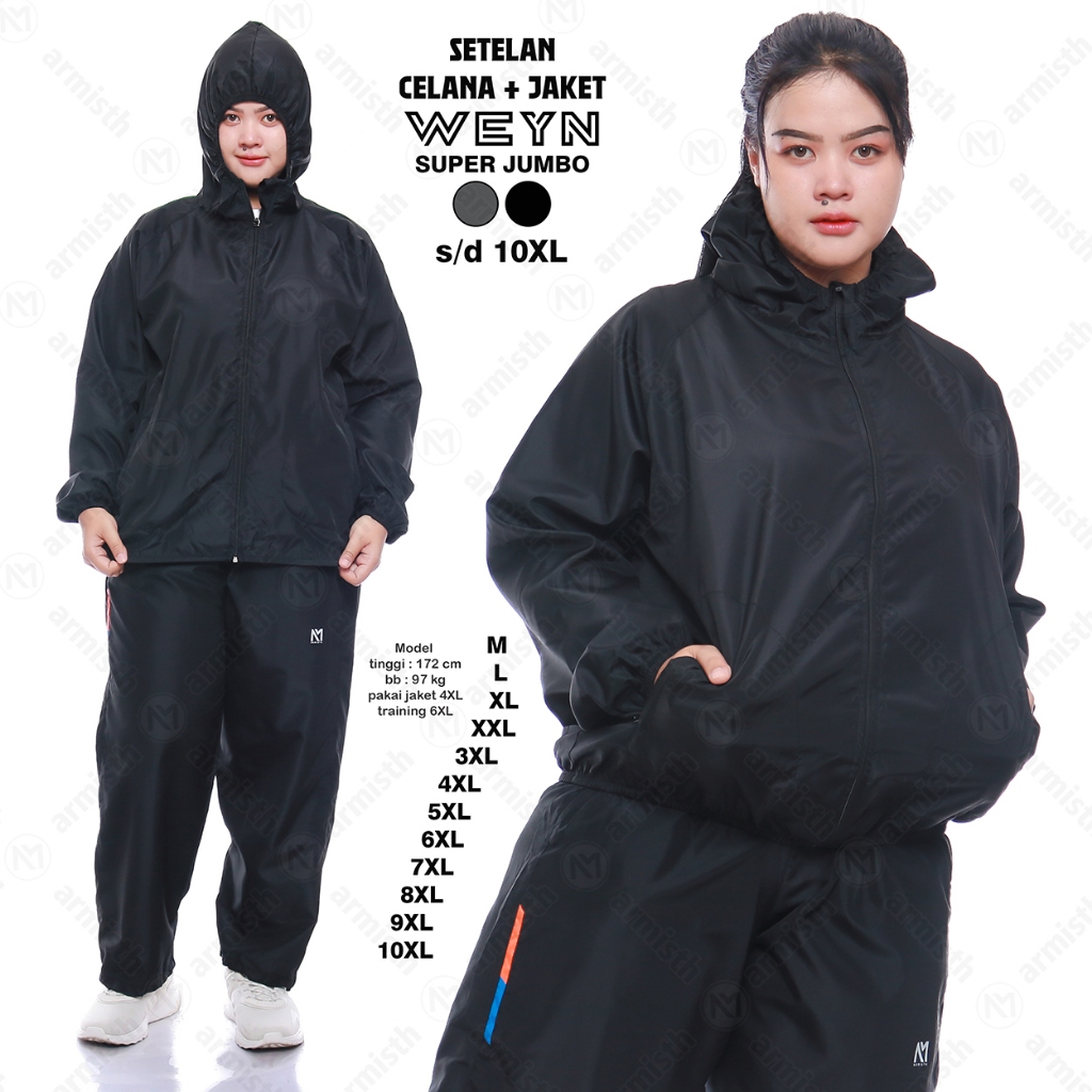 Armisth Setelan Olahraga Parasut Wanita Weyn Super Jumbo Celana & Jaket Sauna Standar Dan Big Size
