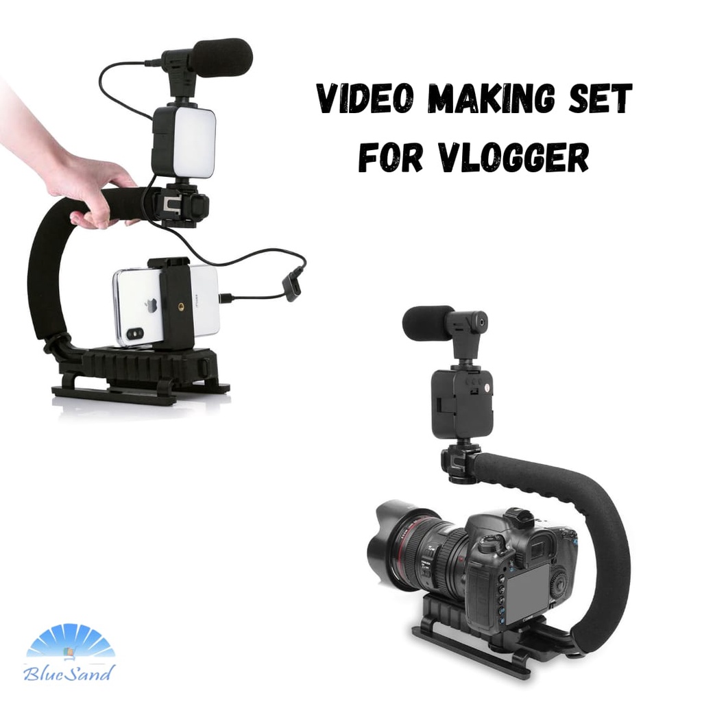 Paket Lengkap Tri Aksesoris Kamera Video Making Set Mic LED With Stabilizer Grip Video Recording Livestream/ Stabilizer