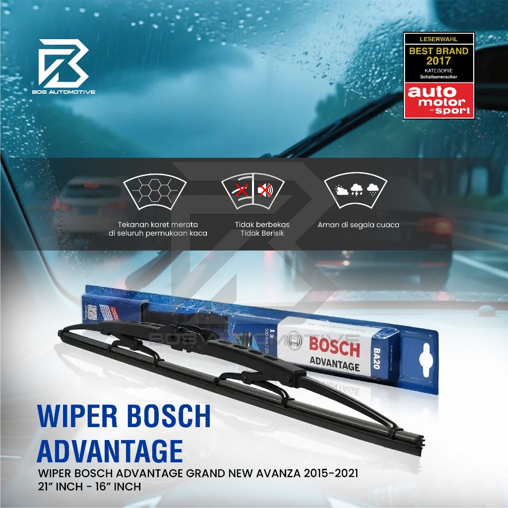 Wiper Blade BOSCH Advantage Besi Kipas Kaca Depan Mobil TOYOTA AVANZA - DAIHATSU XENIA LAMA 2004 - 2011 Frame Hook