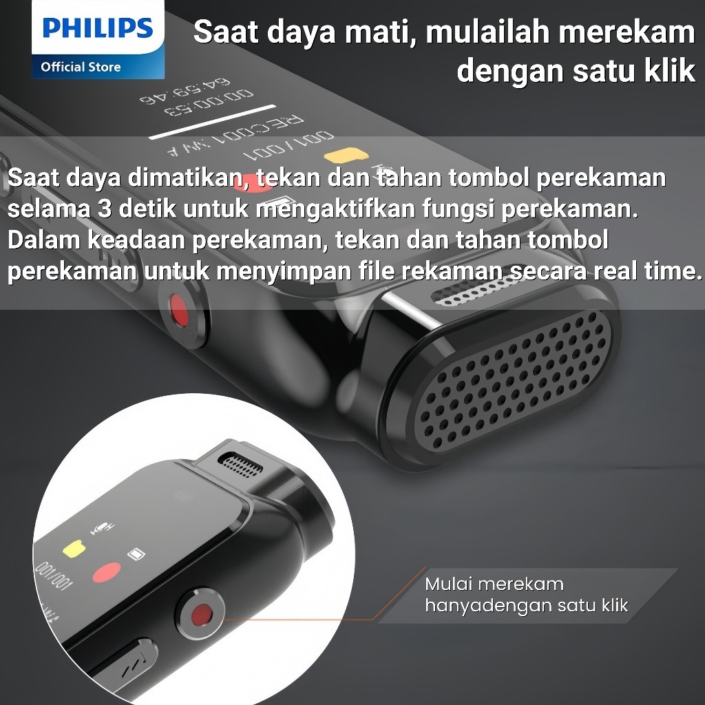 Original Philips Digital Voice Recorder VTR5010 16GB-Digital Recorder Digital Mini Digital Recorder Mengurangi perekaman