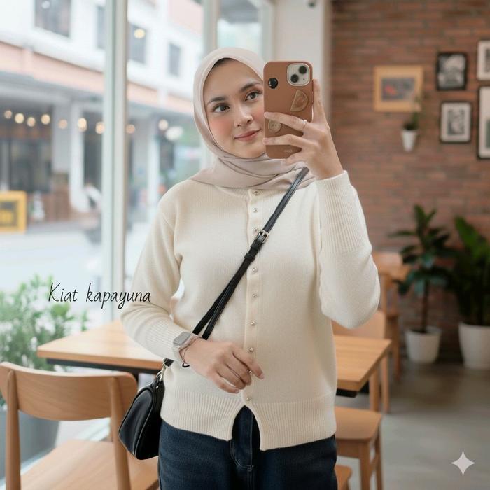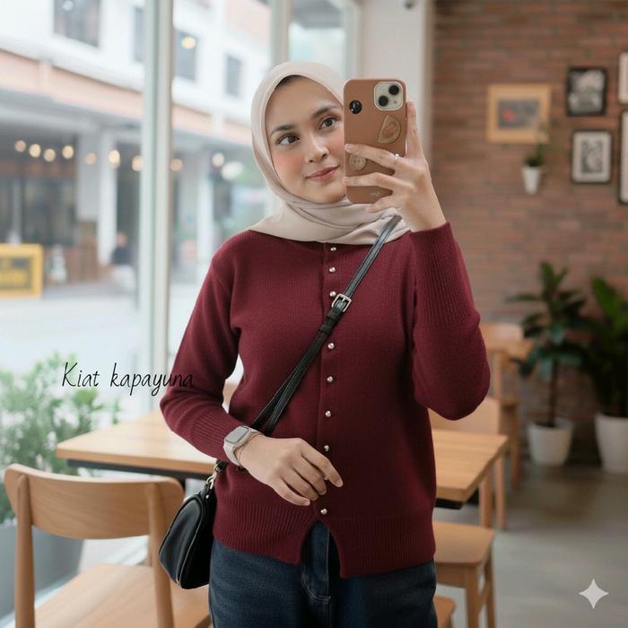 CARDIGAN RAJUT KANCING ATASAN WANITA BOTTON RAJUT KNITWEAR OUTER KOREAN STYLE PREMIUM - HITAM