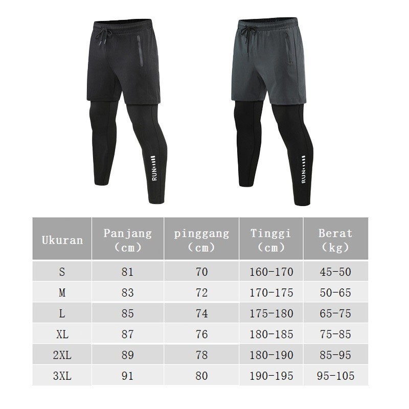 NEW ORIGINAL Celana Pendek + Manset Panjang Olahraga Gym Running Lari Pria Dewasa