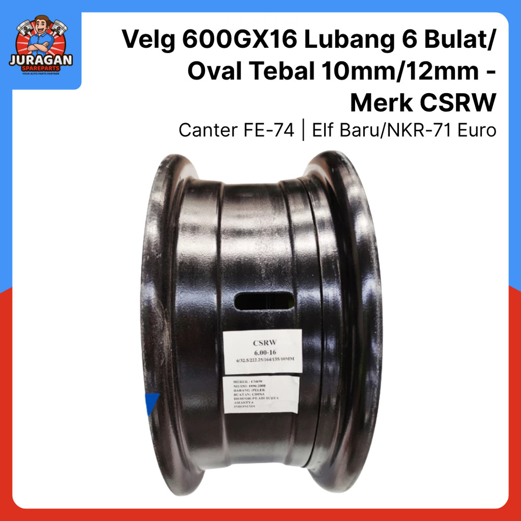 Velg Canter FE-74/NKR-71 Euro/Elf Baru 600GX16 Ready Lubang 6 Bulat/Oval Ketebalan 10mm/12mm - Merk CSRW
