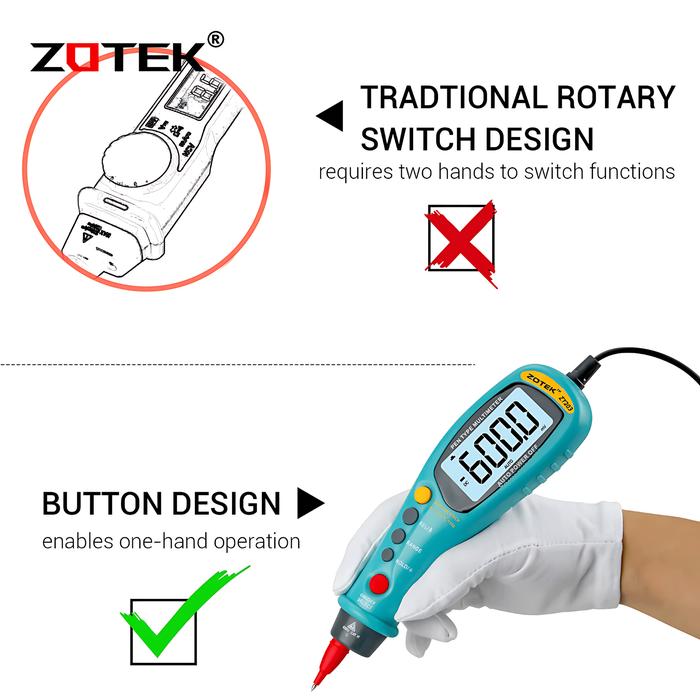 Zotek ZT203 AC DC Pen Type Digital Multitester Avometer Diode NCV