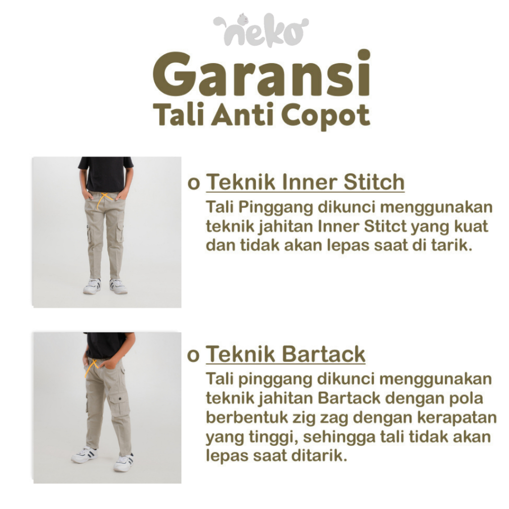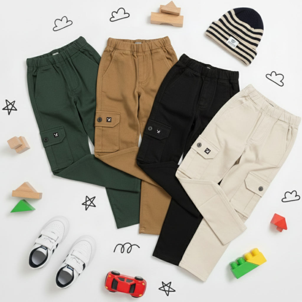 Neko Celana Panjang Cargo Anak Laki-Laki Usia 1-12 Tahun Kain Twill Strecth Melar