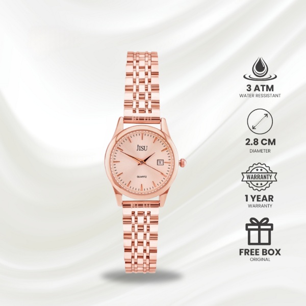 Jam Tangan Fashion Wanita Anti Air Jam Korea Elegant Steel Rosegold Permata Tanggal Anti Karat Jisu Watch 1172
