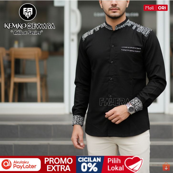 BAJU KOKO PRIA-KOKO LENGAN PANJANG MOTIF BATIK EXCLUSIVE WARNA HITAM BAHAN TOYOBO M L XL XXL XXXL