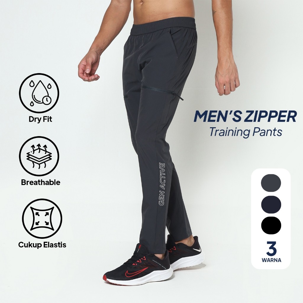 Gen Active Celana Panjang Pria Quick Dry Training Outdoor Celana Cowok Zipper Gym Training Fitness