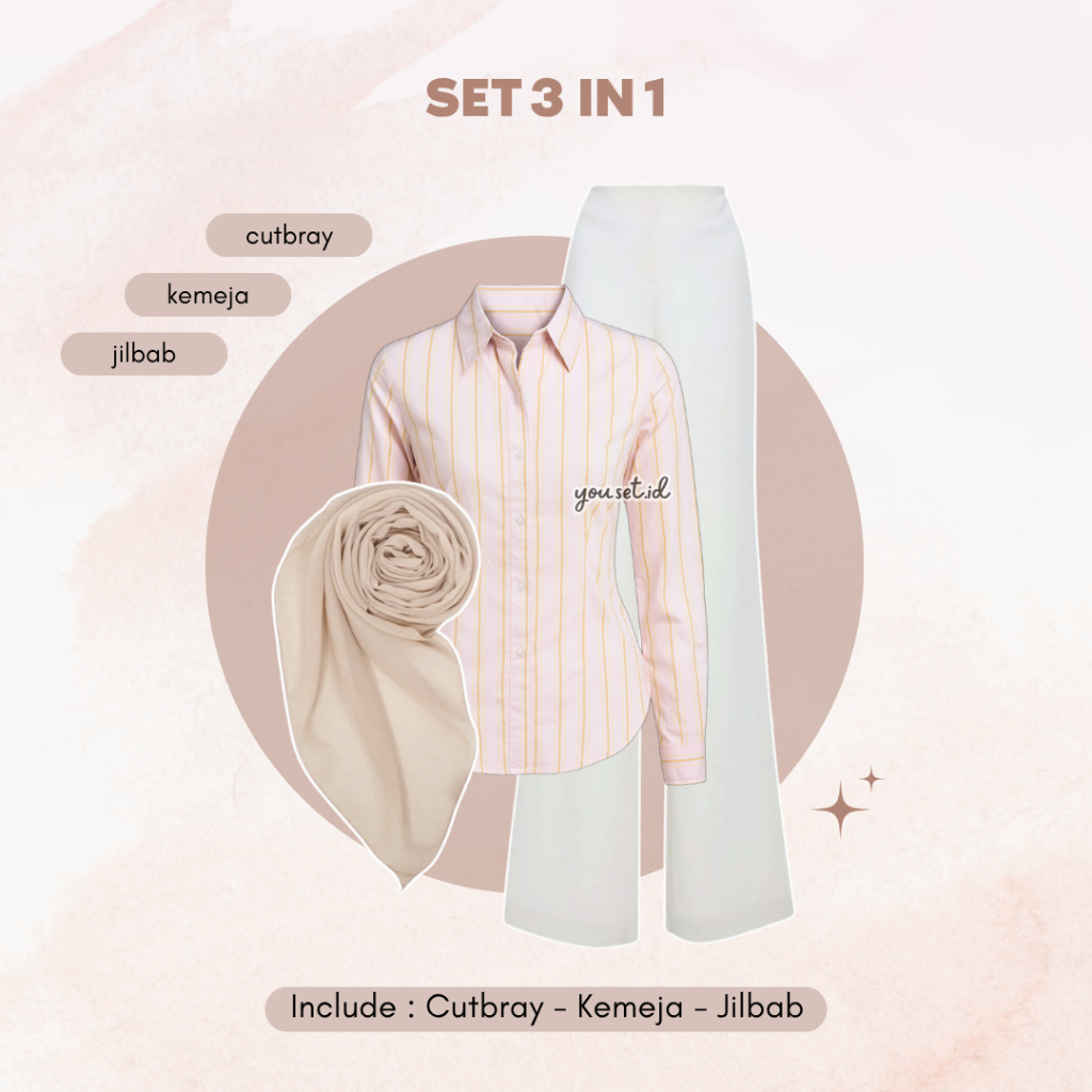 [Star] Terbaru Baju One Set Setelan 3in1 | Kemeja Wispie + Cutbray + Jilbab Segi Empat | Fitted Shirt | LB157 Terlaris