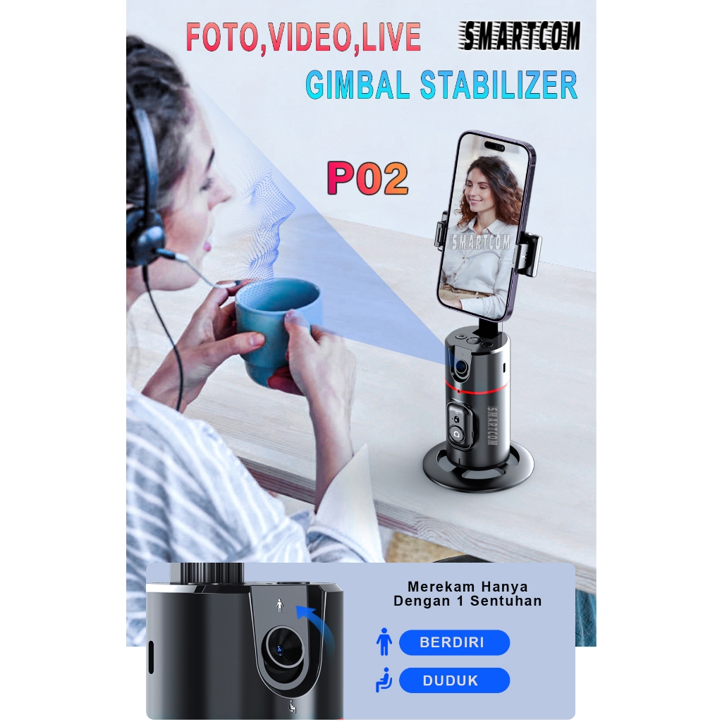 SMARTCOM - Gimbal Stabilizer P02 Handphone Auto Face Tracking 360° with Bluetooth