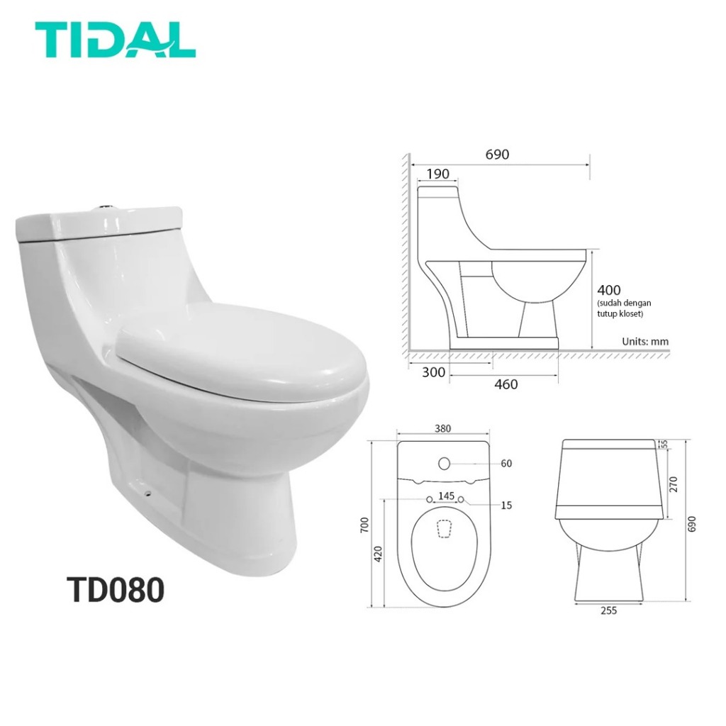 Kloset Duduk 1 Set Manual Portable siram Wc Duduk Toto Toilet Duduk Kekinian + Jet Shower Tidal TD080