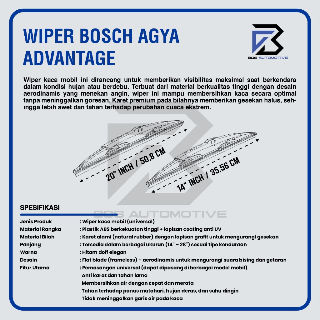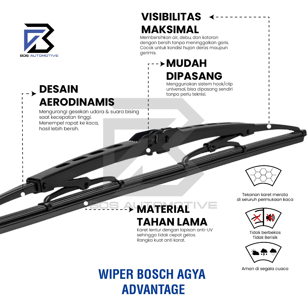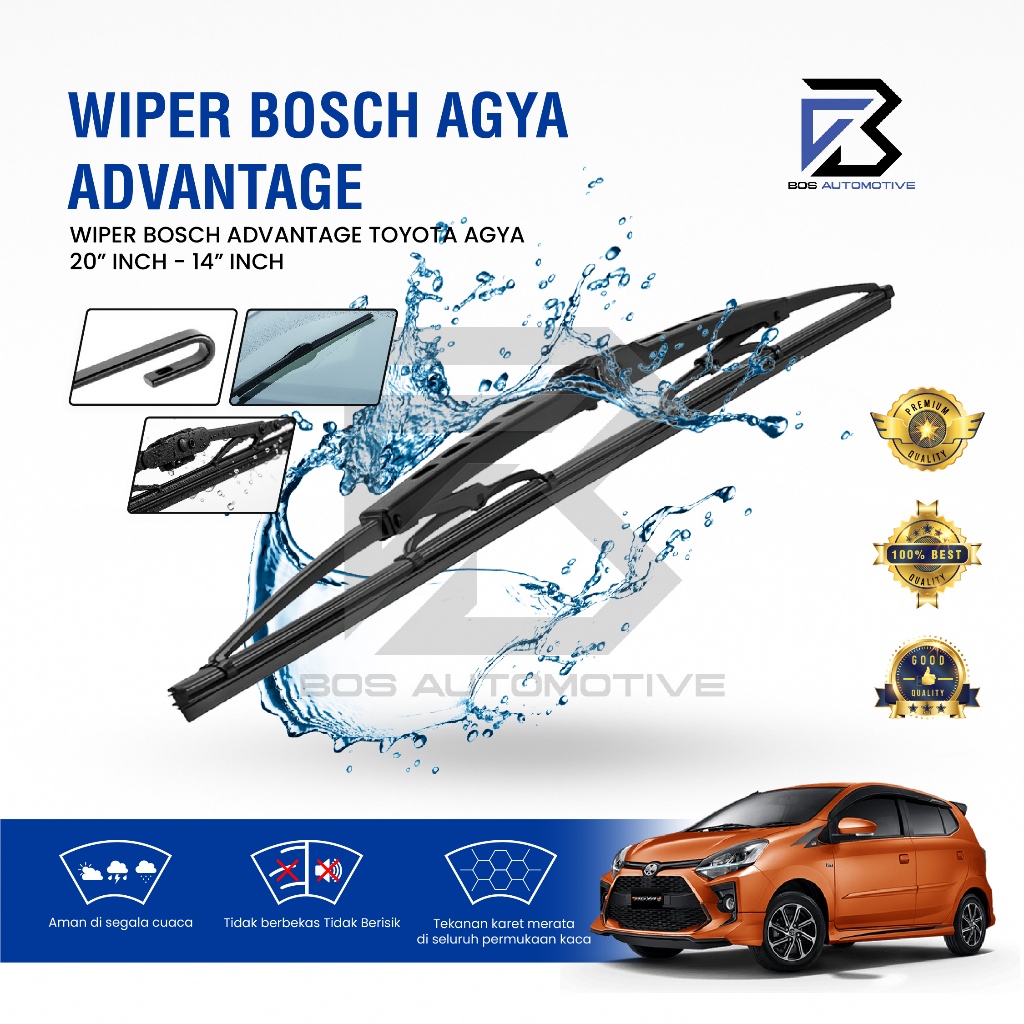 Wiper Blade BOSCH Advantage Besi Kipas Kaca Depan Mobil TOYOTA AGYA - DAIHATSU AYLA Frame Hook 21" - 14" Inch Original