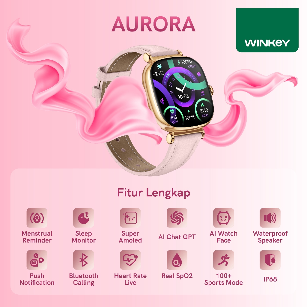 [Star] smartwatch winkey wanita aurora menstrual reminder layar amoled ai chat gpt