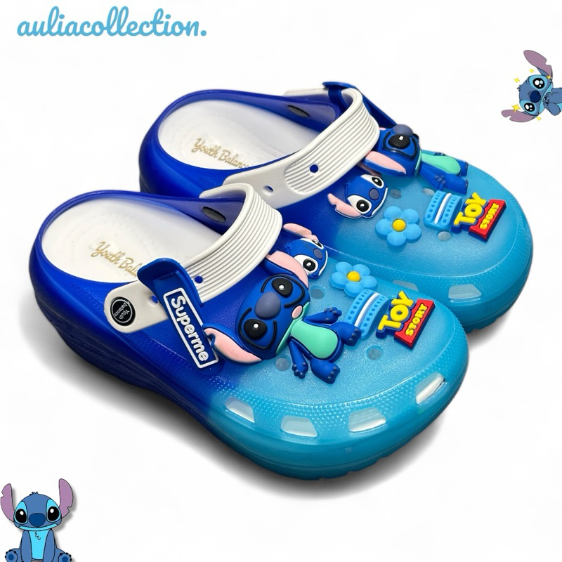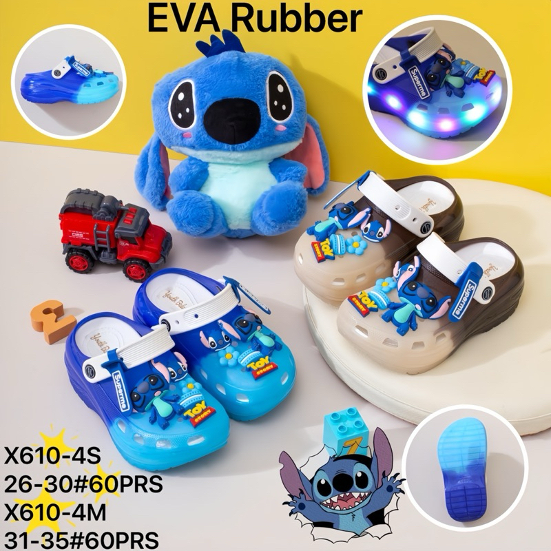 Sandal Anak Laki-Laki Perempuan Crocs Jibbitz Karakter Stich Led X610-M Anti Slip Terbaru Eva