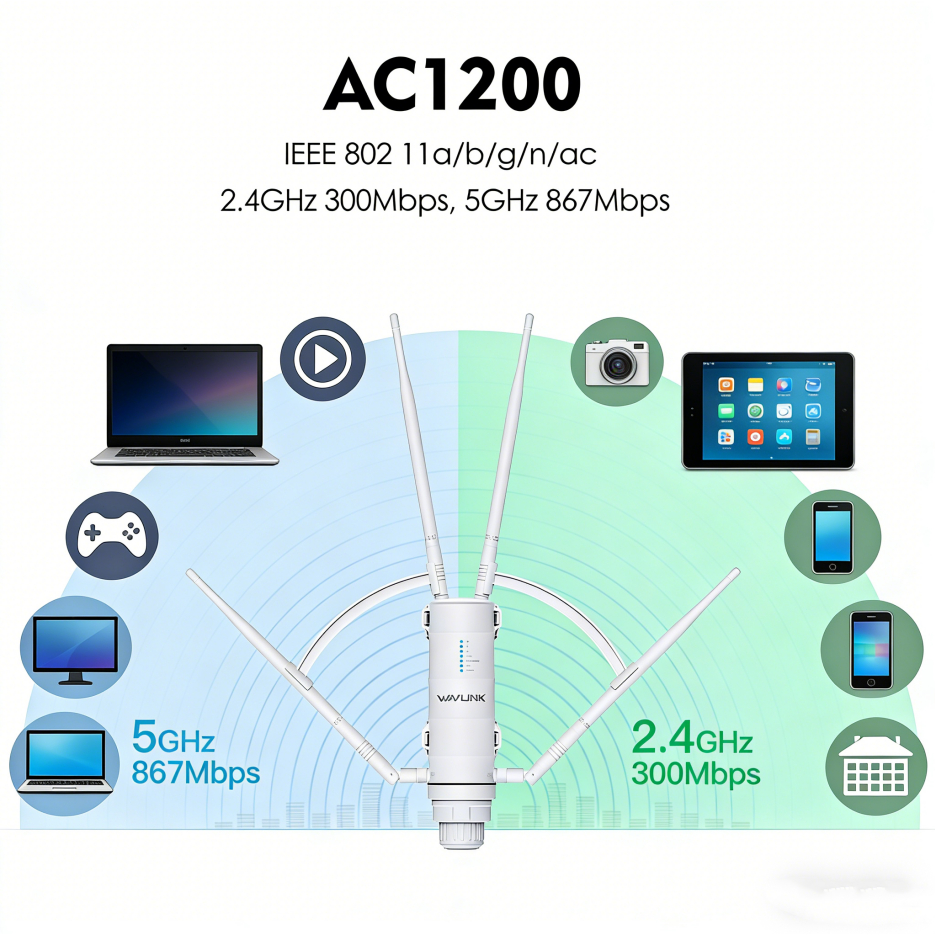 Wavlink Ac1200 Penguat Sinyal Wifi Outdoor - Wifi Extender & Repeater Dual Band 2.4G+5G, Waterproof, Mode Ap/Router/Repe