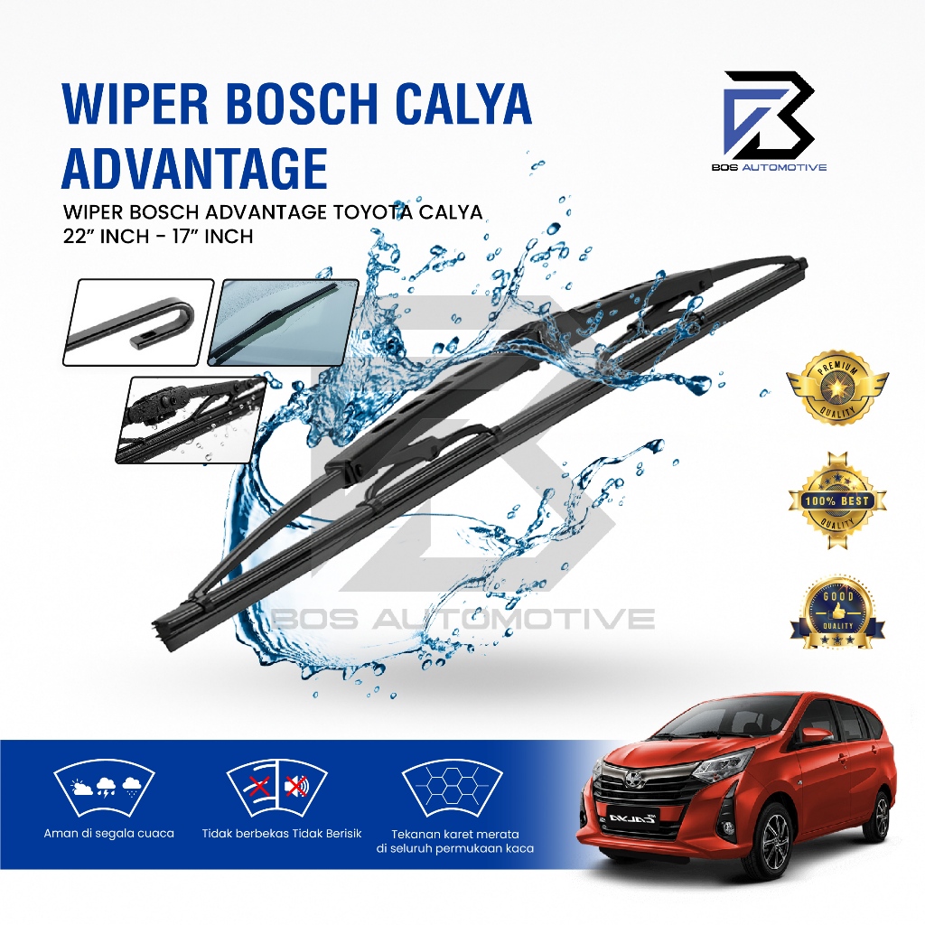 Wiper Blade BOSCH Advantage Besi Kipas Kaca Depan Mobil TOYOTA CALYA - DAIHATSU SIGRA Frame Hook 22" - 17" Inch Original