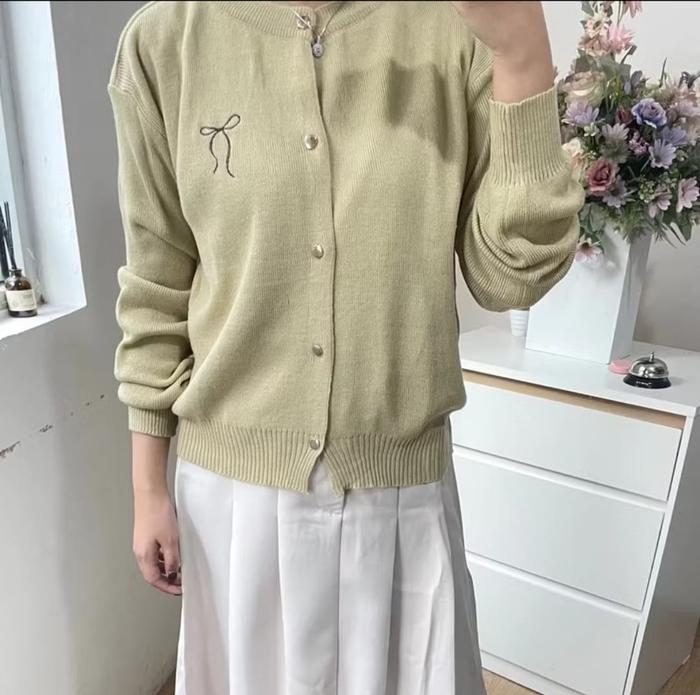 CARDI NAOMI KARDIGAN RAJUT BASIC PITA BORDIL POLOS - HITAM