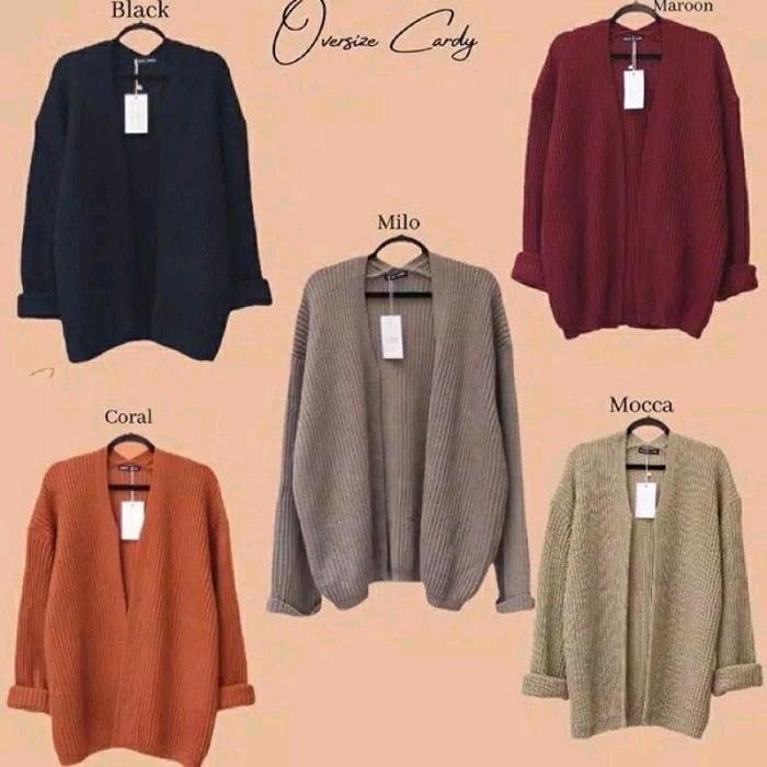 CARDI KNIT SWEATER RAJUT BRESKA BAJU PANJANG NYAMAN KNITWEAR CARDIGAN TEBAL KANCING OUTER KARDIGAN OVERSIZE ATASAN HITAM TANGAN - HITAM, L