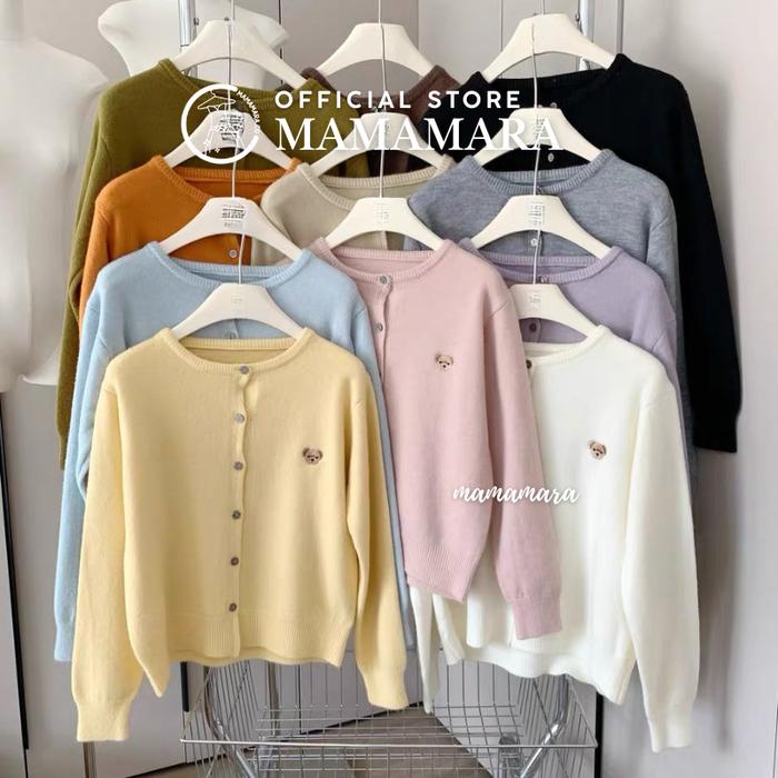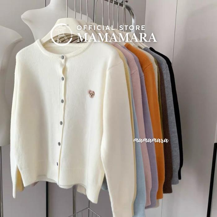 MAMAMARA - CARDIGAN RAJUT WOL BASIC BEAR KNIT FULL WARNA LEMBUT HALUS SIMPLE OUTER DAILY WEAR KNITWEAR WANITA ATASAN - BIRU