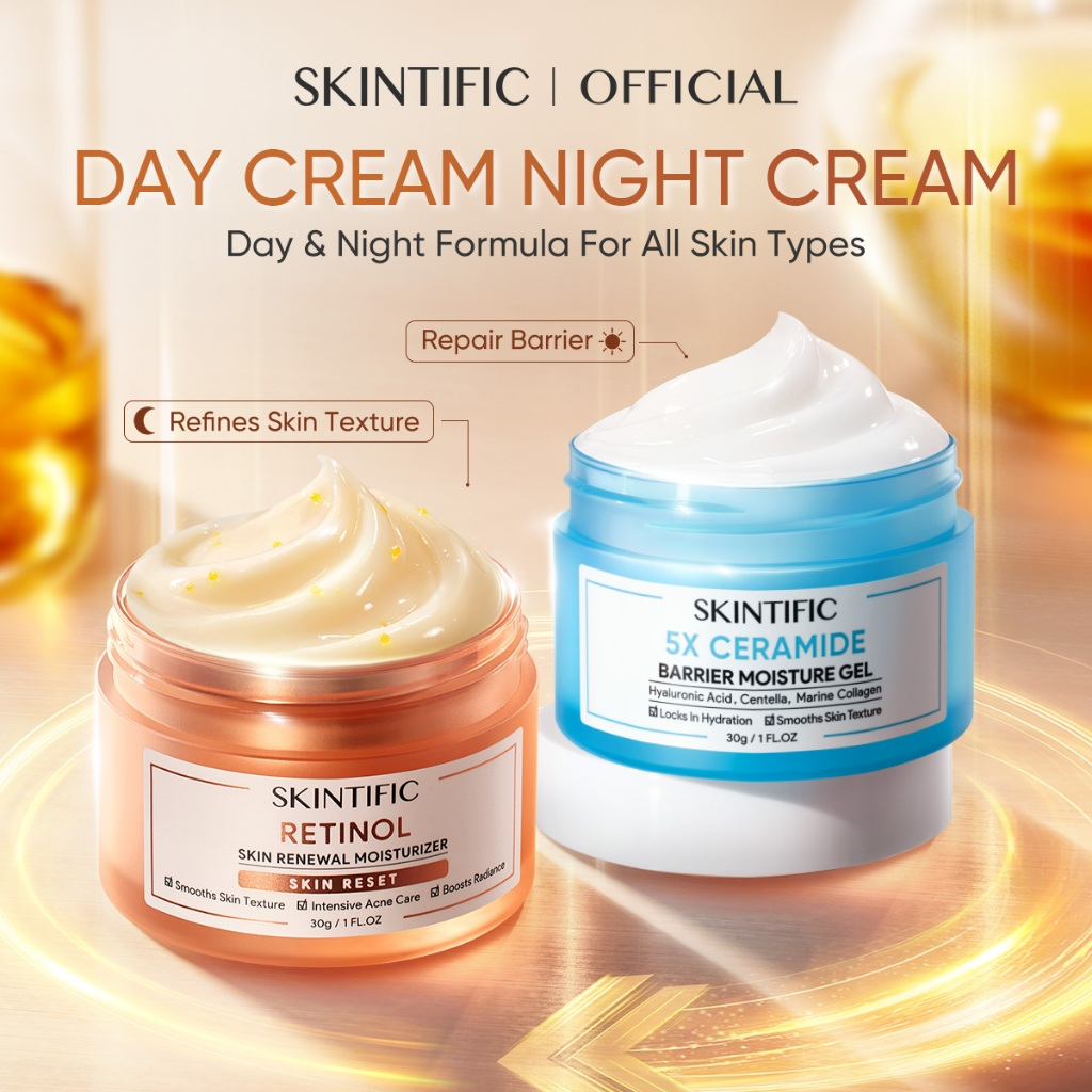 SKINTIFIC - Day Cream Night Cream 377 Dark Spot + Retinol Skin Renewal Moisturizer 30g | Pelembab Wajah Serum Wajah