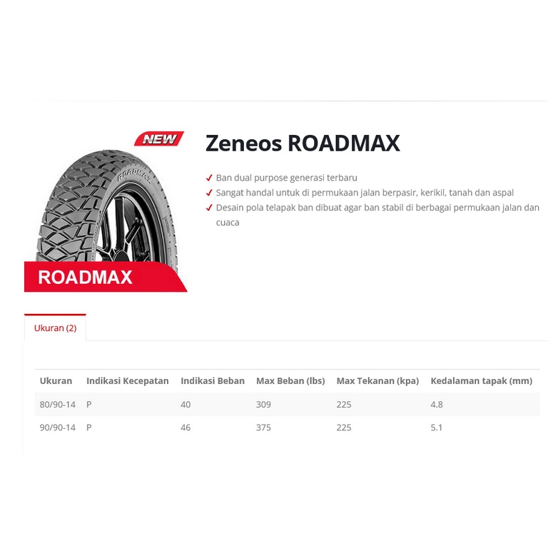 ( RING 12 ) Paket Zeneos ROADMAX 100 90 12 dan 110 90 12 Ban Motor TL Dual Purpose Semi Trail scoopy