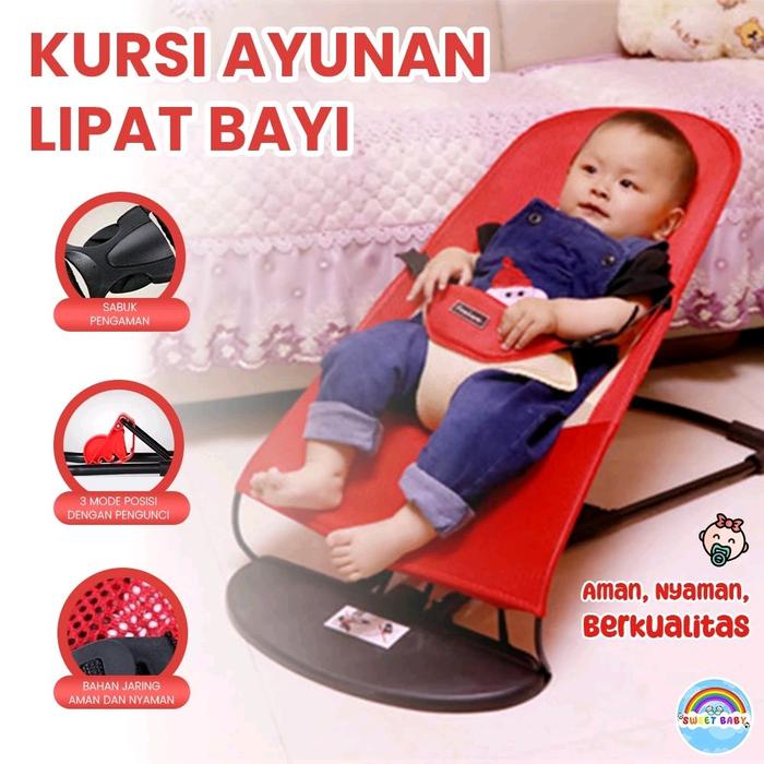 Kursi Ayunan Bayi Lipat Baby Bouncer Tempat Tidur Bayi Goyang - Kuat sampai 20Kg - Hitam