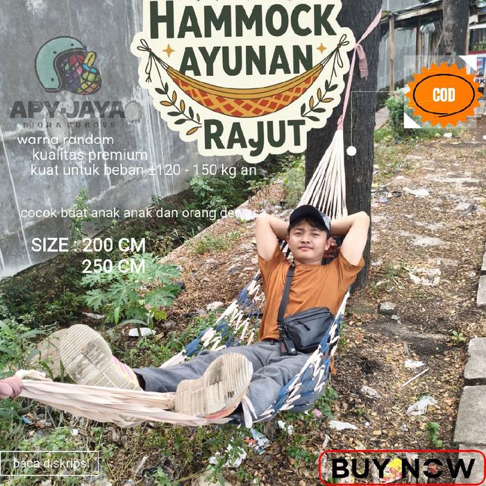 Hammock ayunan rajut || ayunan gantung di pohon || ayunan jaring panjang 250 cm Camping Outdoor