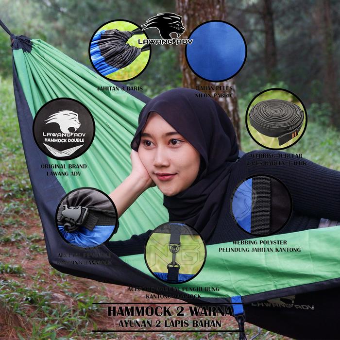 Hammock 2 lapis ayunan double 2 warna berkualitas / ayunan camping - hitam-merah