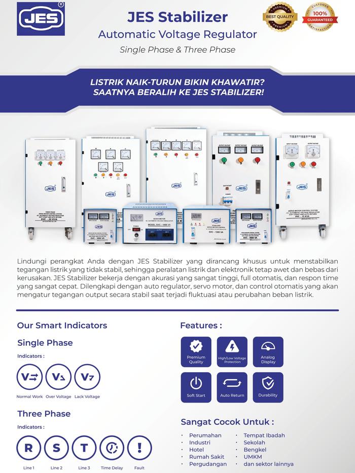 Stabilizer Listrik JES stabiliser 7,5 KVA Stavol Full Otomatis SVC Avr 7500 VA Akurasi Tinggi
