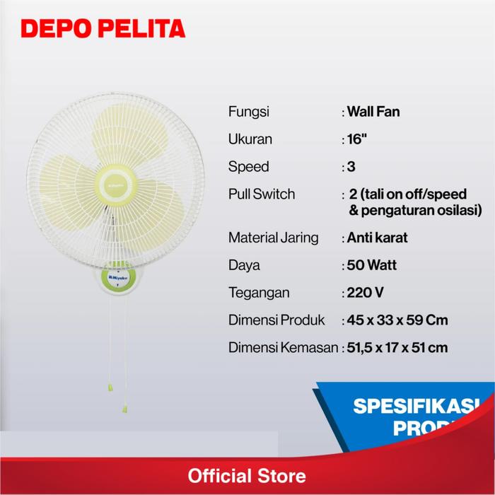 MIYAKO KIPAS ANGIN LISTRIK WALL FAN / KIPAS ANGIN DINDING - KAW 1689RC