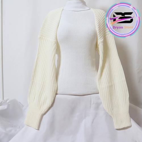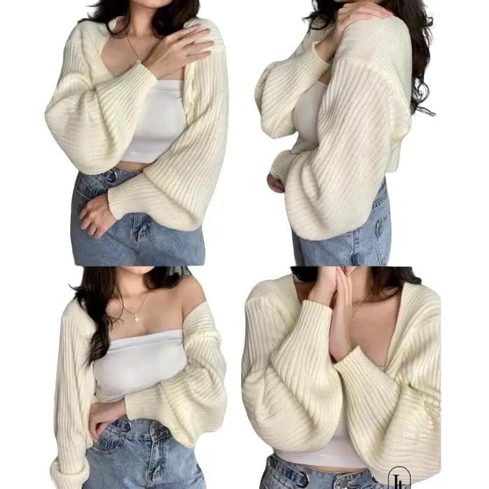 PREMIUM LIAM OVERSIZE CROP BALERO CARDY CARDIGAN CROP RAJUT WANITA 7 GET TEBAL BAJU FIT LENGAN BALON - BROKEN WHITE