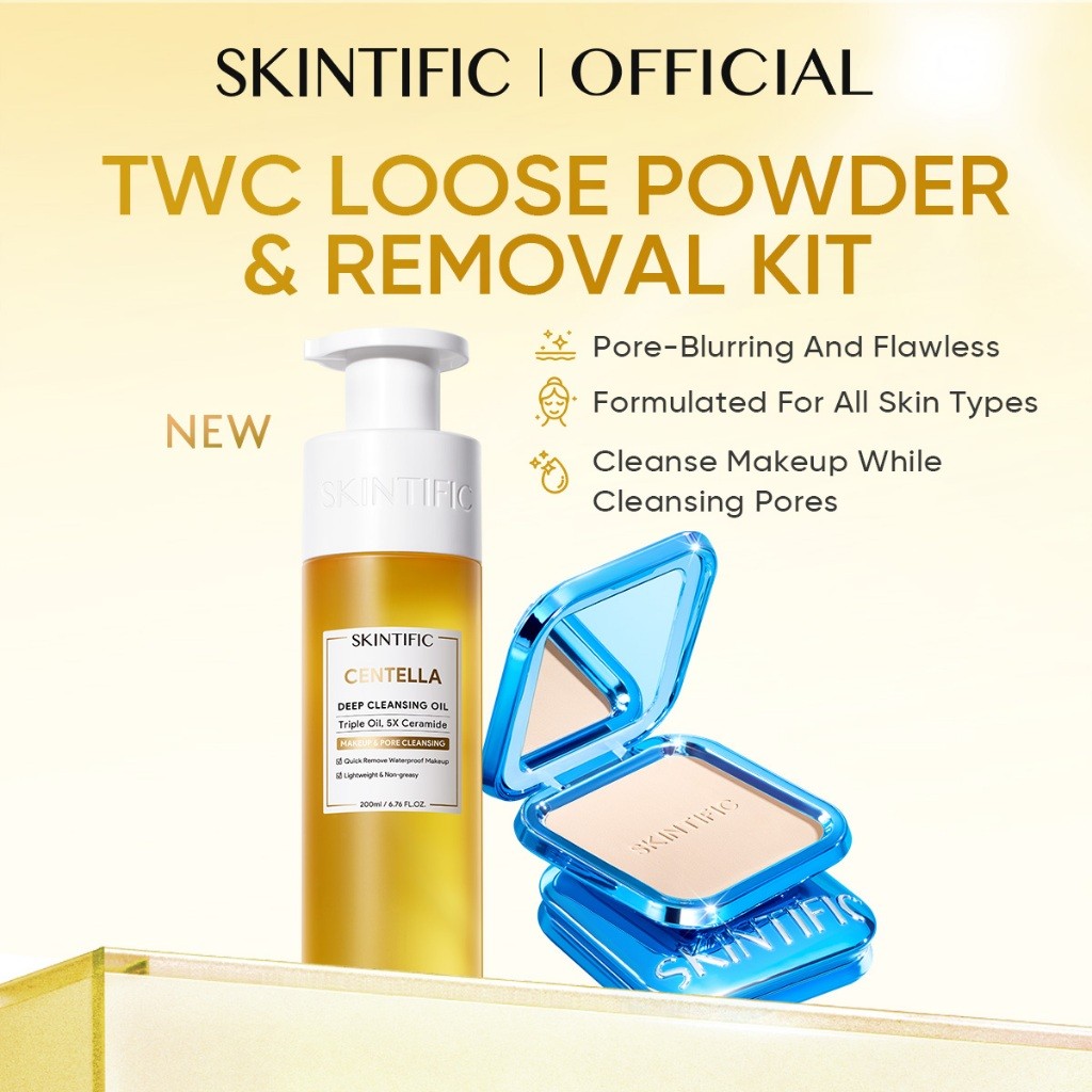 SKINTIFIC | TWC LOOSE POWDER & REMOVAL KIT 2PCS| CLEANSING OIL PERFECT BLURRING TWC LOOSE POWDER Foundation