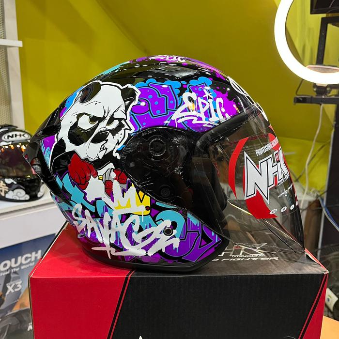 NHK R1 Elite MURAL Helm Motor Half Face R One Elit Motif Gp Edition dengan Desain Graffiti Unik dan Kualitas Terbaik - B
