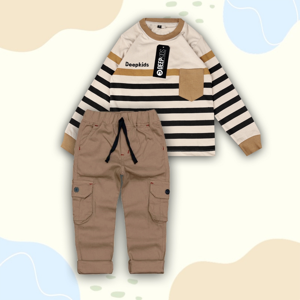 Setelan Anak Laki-Laki Kaos Tangan Panjang & Celana Cargo Panjang Premium Usia 1 2 3 4 5 7 8 9 10 11 12 Tahun | Set Tpgs