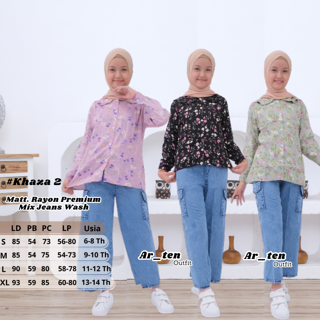 Setelan Anak Perempuan Korean 6-14 Tahun / Set Anak Perempuan 6-14 Tahun Matt Rayon Mix Jeans / Set Love Jeans / Khanza
