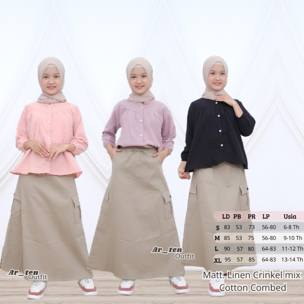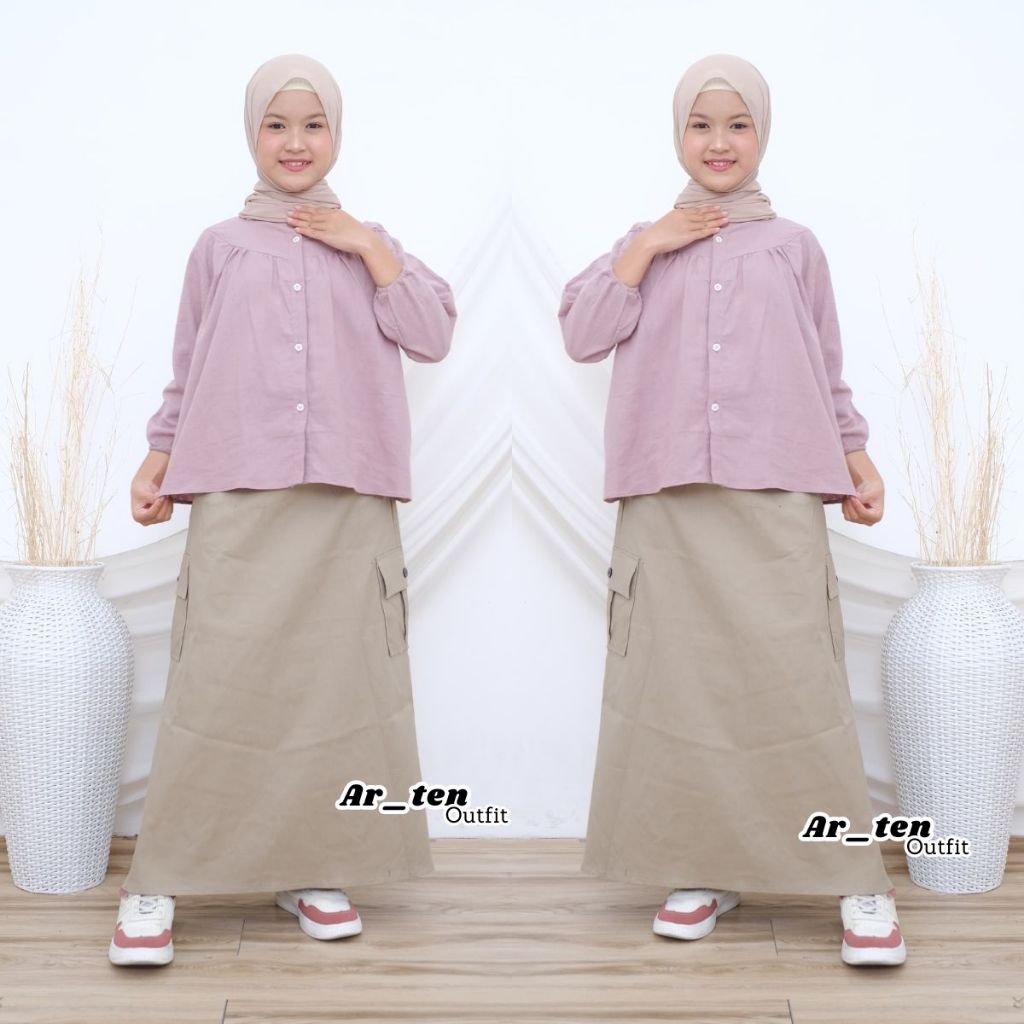 Setelan Cargo Anak Perempuan / Set Rok Cargo Anak Perempuan 6-14 Tahun / Setelan Rok Cargo Anak